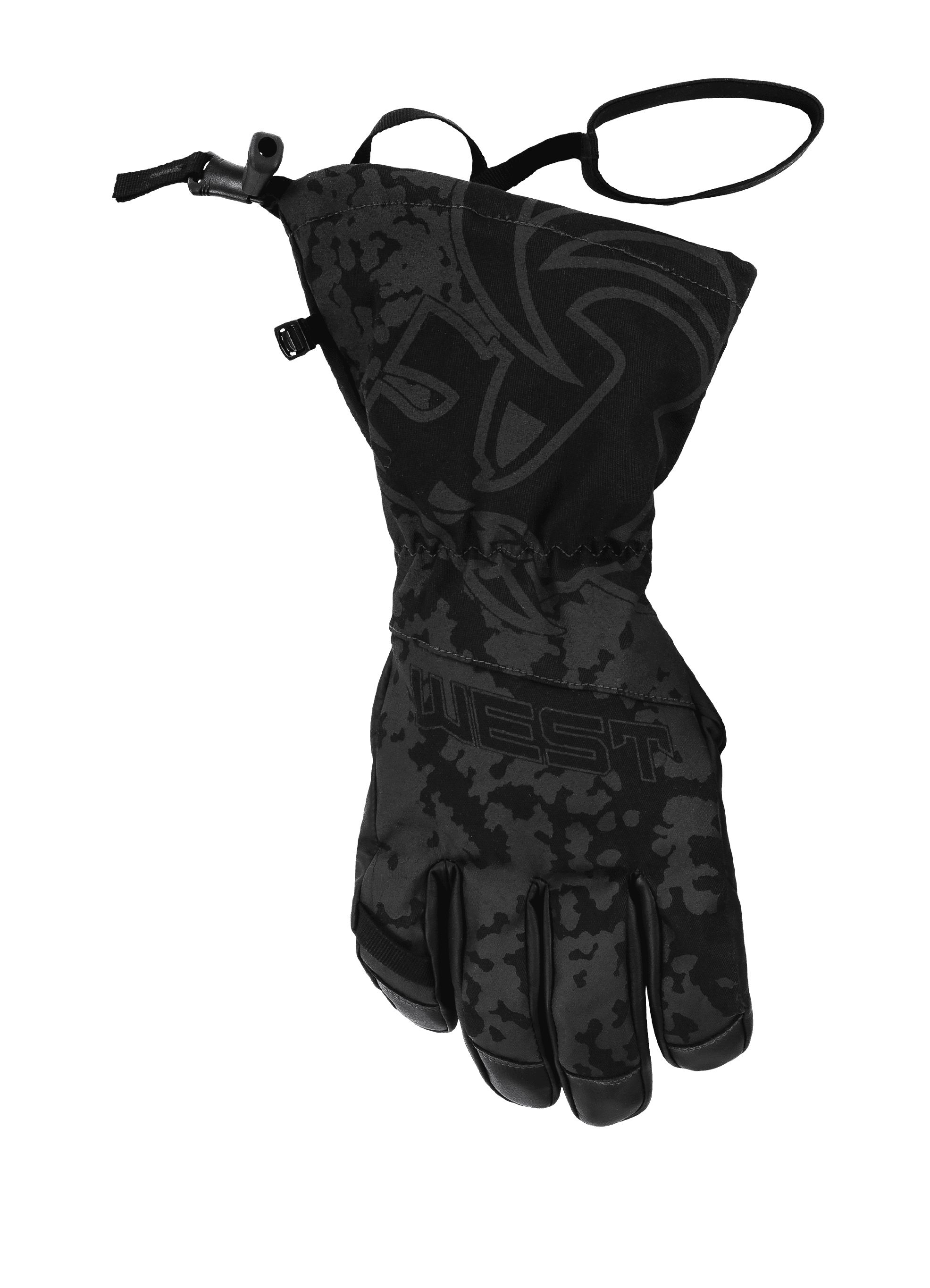 Wrist loop to attach glove to other equipment (cuff facing up)